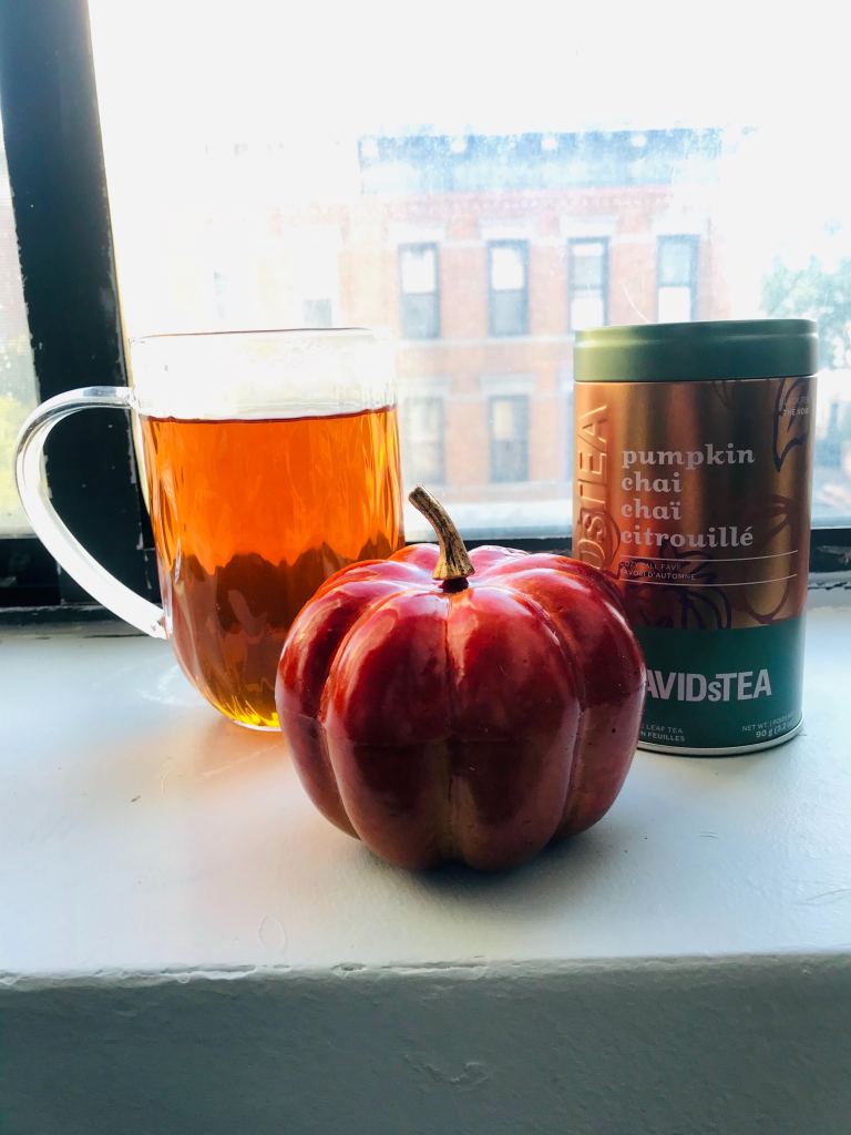 I break out my beloved pumpkin chai tea from David’s Tea, and proceed to do a photoshoot.