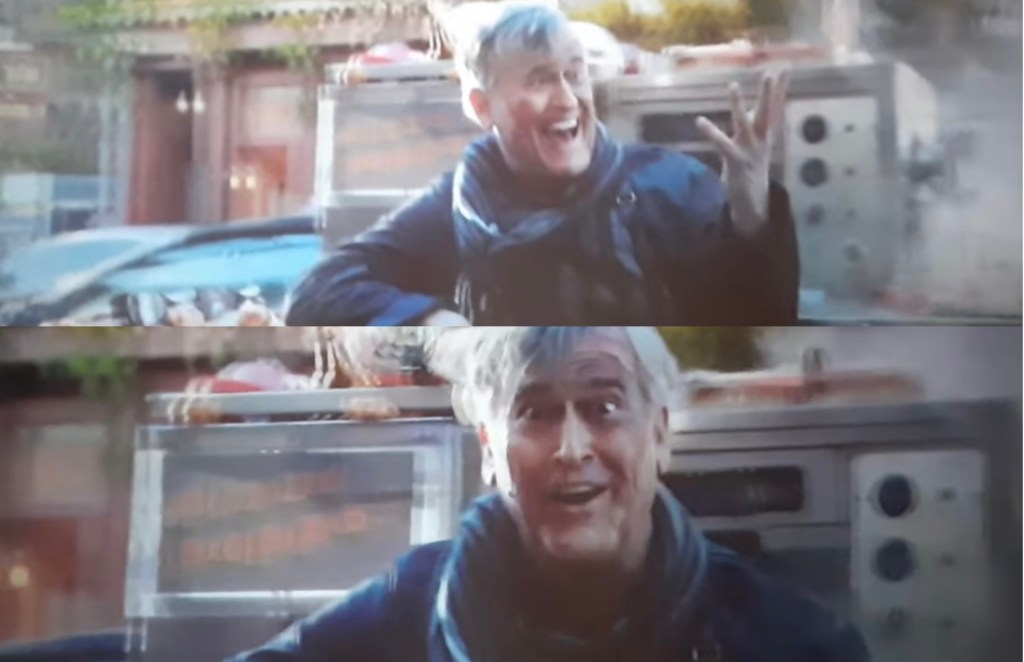 Cut back to my Multiverse of Madness screening, I’ve returned to my seat and my partner solemnly has to deliver the news that I missed the Bruce Campbell cameo. I am devastated. For me personally, I would rather miss the Illuminati than Bruce! Once the credits roll and I’m waiting for the post-credts scenes, I text my sister who’d already seen the movie that I missed it the cameo. In an attempt to set me up for the final scene, she casually mentions what happened to him earlier in the movie: